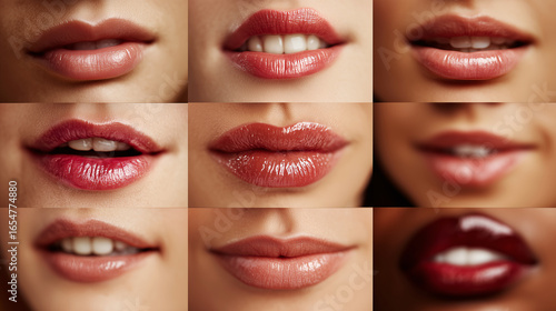 Beauty Collage of Smiling and Plump Lips Close-Up
