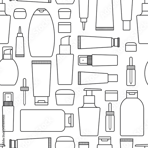 Beauty cosmetics shop icons. Vector seamless pattern. Outlined signs for cosmetics shop. Skin body care.