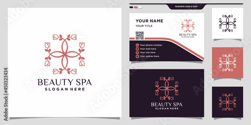 Beauty flower rose logo with unique linear style and business card design Premium Vector