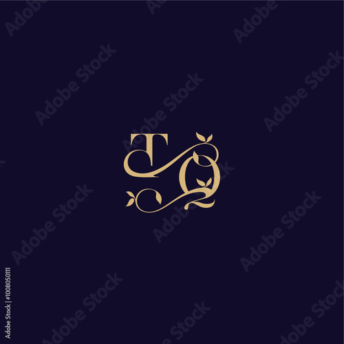 beauty leaf monogram logo organic and elegant concept TQ wedding initial letter