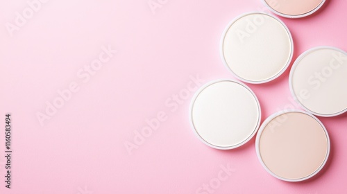 Beauty Products Display Studio Makeup Pink Background Flat Lay Aesthetic Appeal