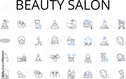 Beauty salon line icons collection. Hair salon, Nail salon, Day spa, Tanning salon, Barber shop, Eye salon, Facial spa vector and linear illustration. Body salon,Skin clinic,Beauty Generative AI