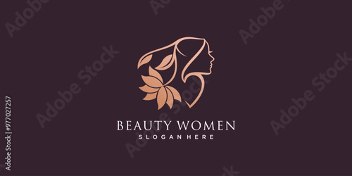 Beauty woman logo with leaf element concept design idea