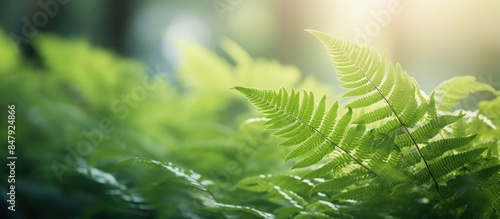 Beautyful ferns leaves green foliage natural floral fern background in sunlight. Creative banner. Copyspace image