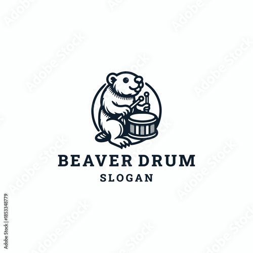 Beaver drum logo style icon design template vector illustration