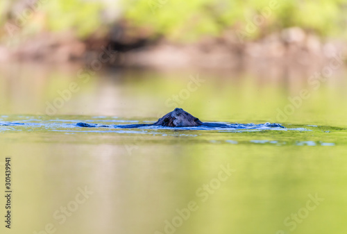 Beavers swimming in a lake, north Quebec, Canada.