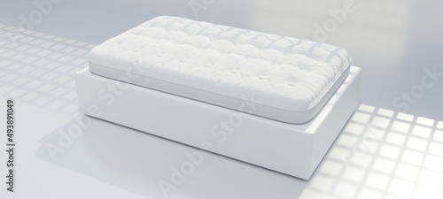 Bed and single mattress white color in a bedroom, comfort sleep concept. 3d render