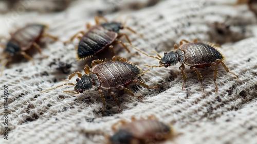 Bed Bugs on Fabric Close-Up Macro Photography of Infestation