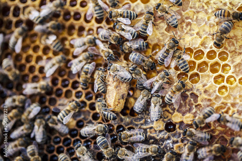 bee in honeycomb