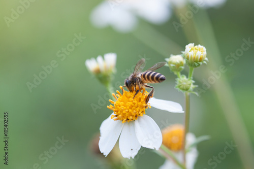 Bee looking for nectar on a daisy flower.
