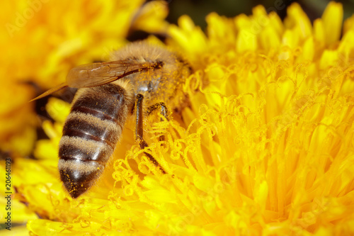 Bee on a yellow dandelion flower