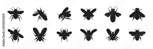 bee silhouette set collection isolated black on white background vector illustration