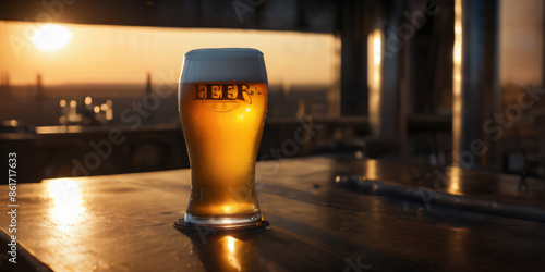 Beer brewery with sunset in background. Extremely detailed high resolution illustration