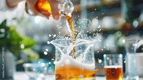 Beer Dispenser Pouring Vinegar into Measuring Cup with Splashing Liquid