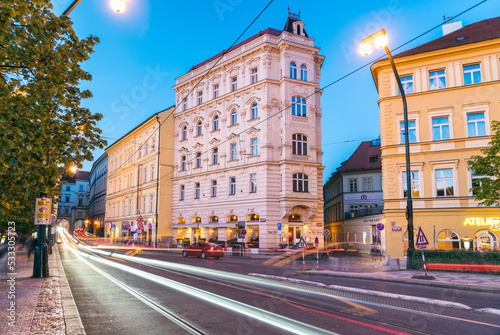 Beer Museum seen on the right side, Prague, Czech Republic