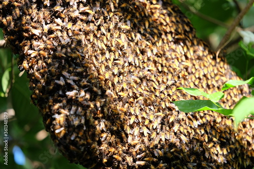 Bees make large nests on trees to find nectar from flowers.