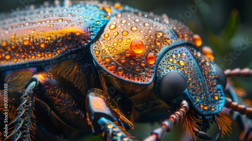 Beetle Shells Focus on the iridescent shells of beetles, capturing their metallic colors and intricate patterns in extreme close-up AI generated