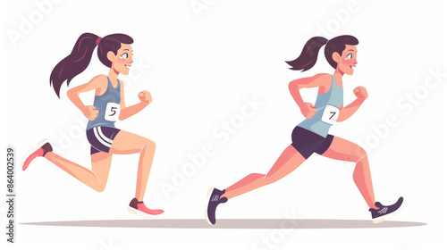 Before & after a run, a beautiful girl sweats. Illustration in flat Vector style