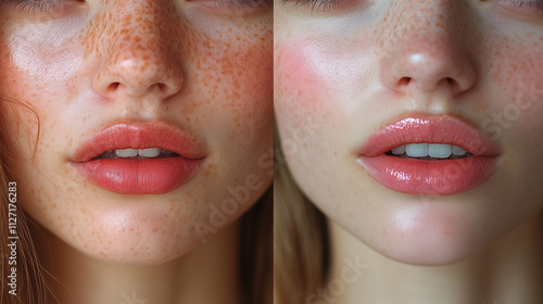 Before and after banner with copy space, women's lips, cosmetology, beauty procedures