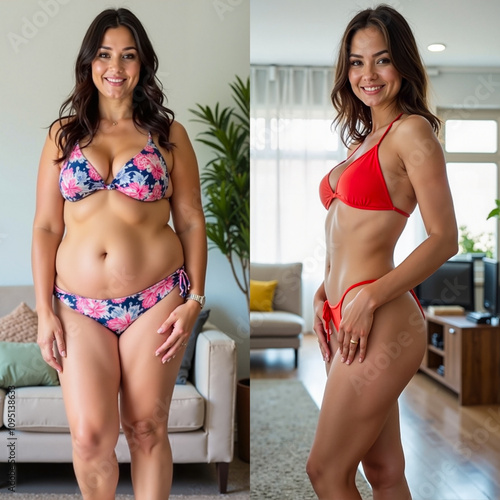 Before and After Weight Loss Comparison for Women. Female Weight Loss Transformation Before and After.