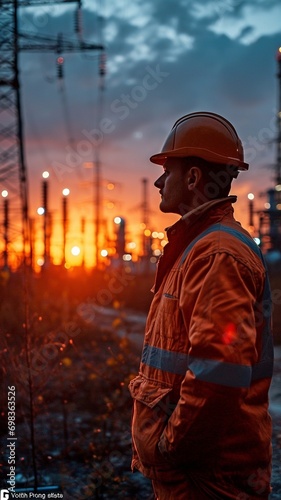 Before energy is commissioned, an energy engineer examines the electrical substation's contemporary equipment. .