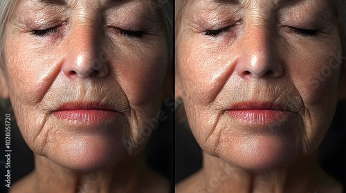 Before-and-after blog images of mouth area wrinkle reduction, showcasing laser treatments, dermal fillers, and natural skin tightening methods, Photorealistic, Clean Lighting