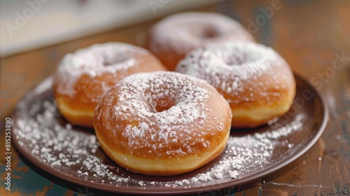 Begin your day on a delightful note with a fluffy donut generously coated in powdered sugar a sweet indulgence that s just perfect for breakfast With every bite savor a burst of flavor and