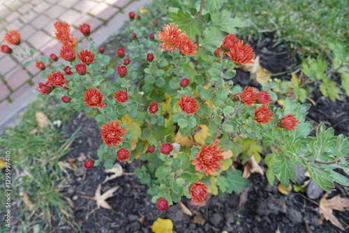 Beginning of florescence of orange spoon Chrysanthemums in mid October