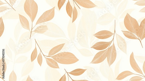 Beige abstract seamless pattern featuring leaves Raster illustration
