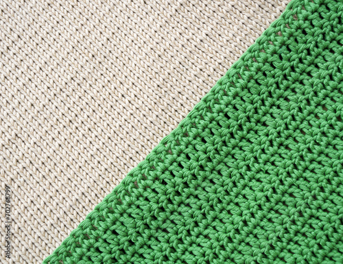Beige and green knitted texture from cotton thread.