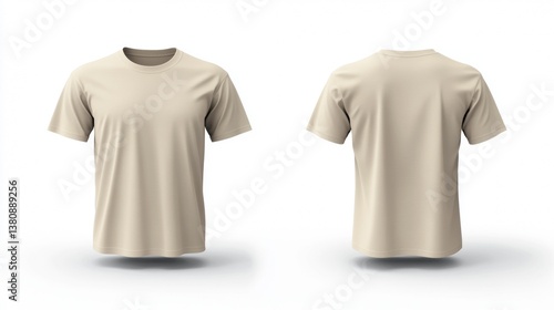 beige boxy tees isolated on white background, front and back view of boxy fit tees