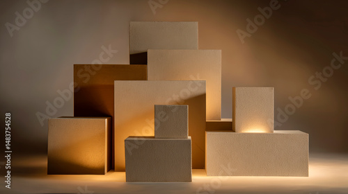Beige Cubic Abstract Composition with Warm Lighting