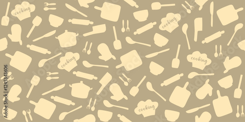 beige kitchen doodle seamless pattern background hand drawing cooking icon