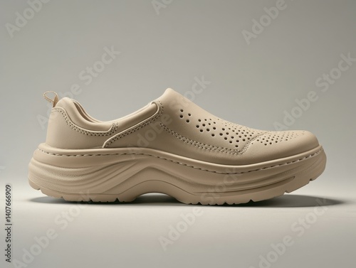 Beige Slip-On Platform Shoe, Neutral Background, Studio Lighting