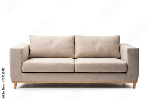 Beige Sofa with Wooden Legs on White Background