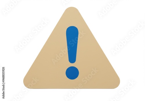 Beige Triangle Warning Sign with Blue Exclamation Mark Isolated on White Background