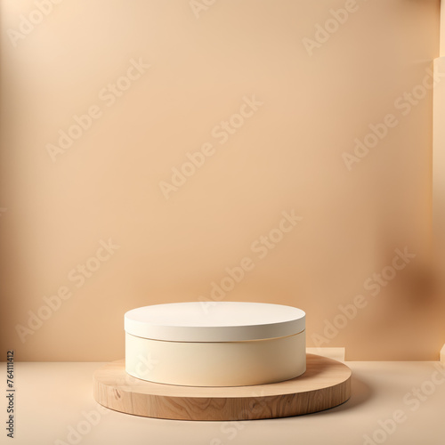 Beige Wooden Display Background, wood stand display scene, beige studio beauty stage platform, pedestal podium, cosmetic organic minimal cream eco presentation, abstract, podium platform, product
