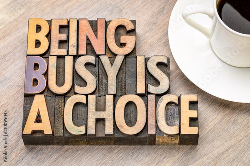 being busy is a choice - word abstract in wood type