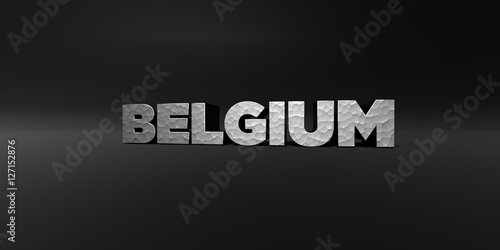 BELGIUM - hammered metal finish text on black studio - 3D rendered royalty free stock photo. This image can be used for an online website banner ad or a print postcard.