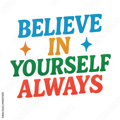 Believe in Yourself Always Motivational Quote Design featuring vibrant retro typography perfect for posters prints apparel and social media positive affirmation self confidence encouragement