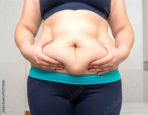 Belly fat woman pinching excess