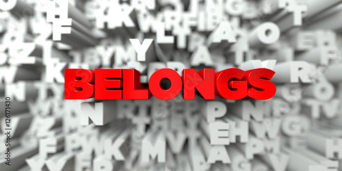 BELONGS - Red text on typography background - 3D rendered royalty free stock image. This image can be used for an online website banner ad or a print postcard.