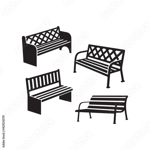 Bench Icons Silhouette Vector Set Park Benches Black & White Vector Illustrations