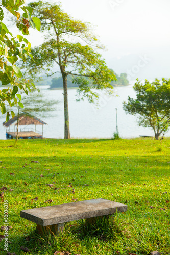 Bench on the lawn.