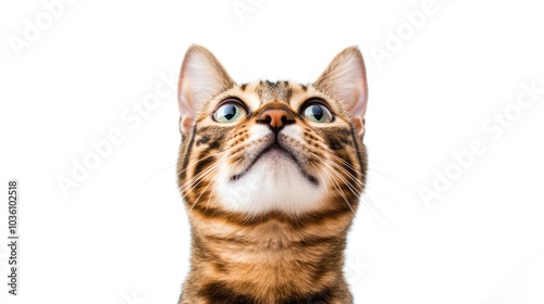 Bengal cat gazes intently Domestic feline on white backdrop