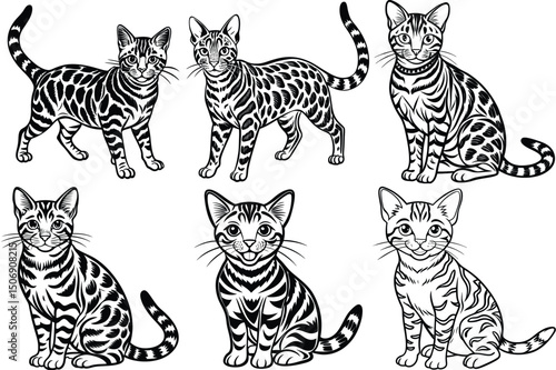 Bengal cat silhouette vector illustration isolated on white background.