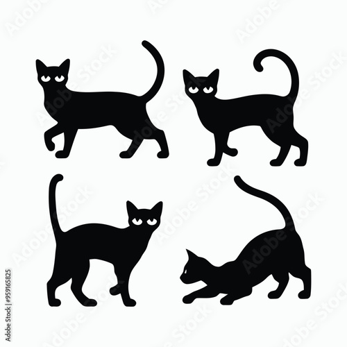 Bengal Cat Silhouette Vector Set Cute Animals Illustration Template