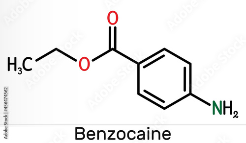 Benzocaine molecule. It is local anesthetic. Skeletal chemical formula