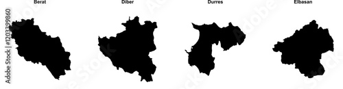 Berat, Diber, Durres, Elbasan outline maps