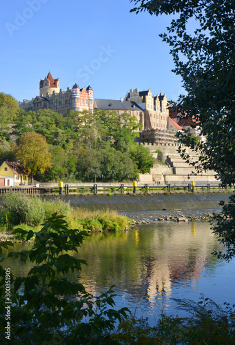 Bernburg, Germany view over the Saale river to the historical castle hill